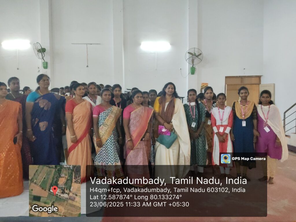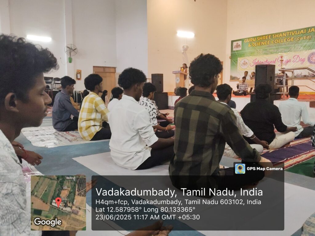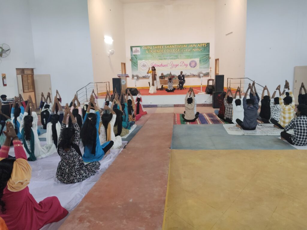 - Hon. AnnaiYasodhaThirumoolarSathya, the esteemed Resource Person, delivered an inspiring lecture on the theme “Serenity Through Yoga.” Her session emphasized the importance of integrating yoga into modern lifestyle for achieving inner calmness and clarity of thought.