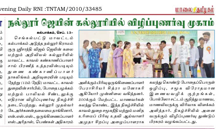 * To collaborate with law enforcement (Tamil Nadu Police) and institutional bodies (NSS & WEC) in building preventive strategies through community engagement.