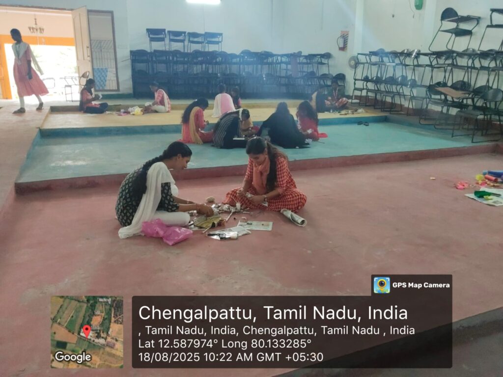 - Many first-year students enthusiastically participated and showcased their talent by creating unique decorative items such as wall hangings, flower vases, and diya stands.