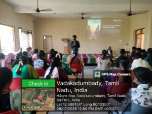 The seminar, sponsored by FIIT Formación Pvt. Ltd., featured Mr. Vinoth Kumar S (Tech Trainer, FIIT Formación Pvt. Ltd.) as the Chief Guest and Resource Person. The session provided students with valuable insights into Data Science, Artificial Intelligence, Python, Power BI, Cloud Computing, and Networking.